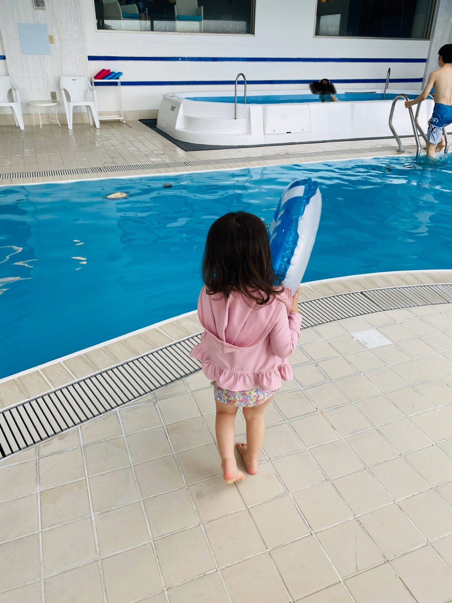 温水プールなので通年入れるのもうれしい。奥にあるのが幼児用プールです。