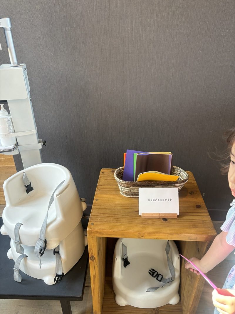 子供用の椅子も貸出可能で、入り口には折り紙のサービスも◎