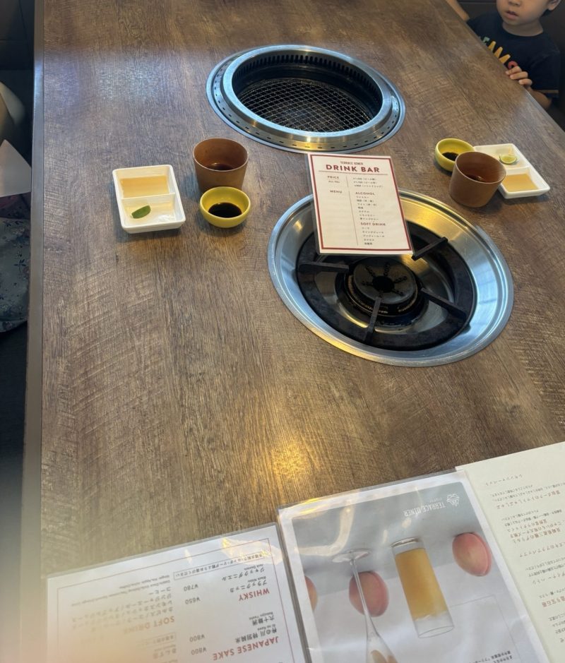席には網焼きとコンロが2口用意されていました。