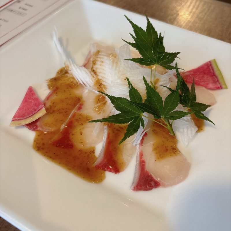 カルパッチョ。鮮度は普通。ソースが独特でした。