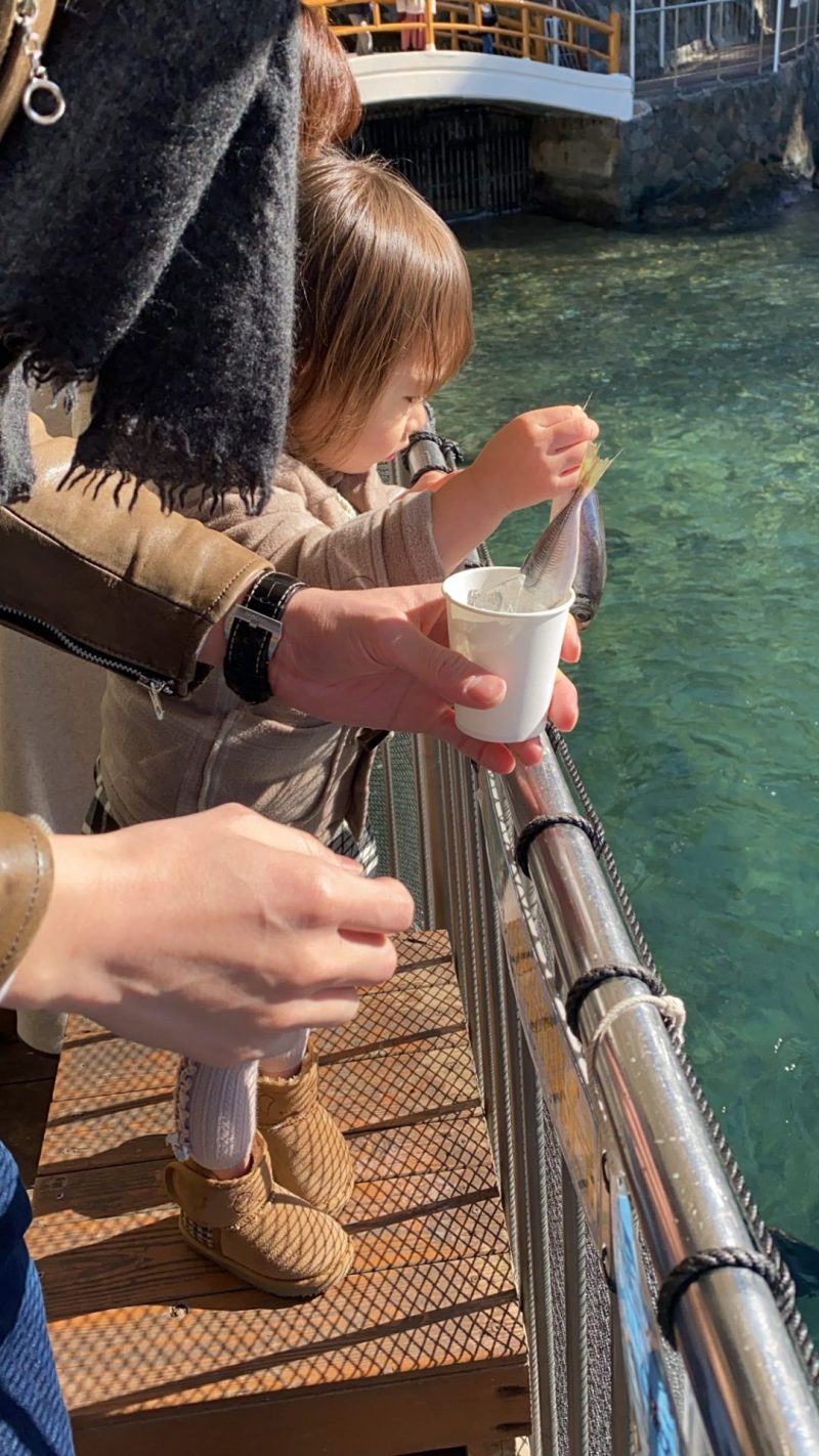 アシカアザラシ餌やり体験では魚1尾をまるっとあげれる◎