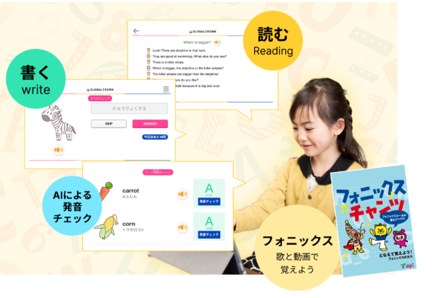 レッスンだけじゃなくて、英語教材のフォニックスの教材も使用可能なので、コスパ高い!