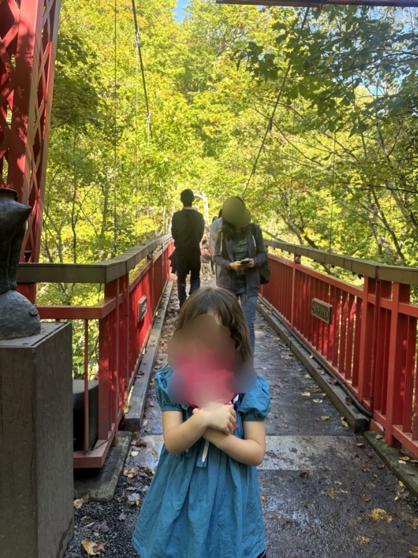 二見公園入口から二見吊り橋まではまっすぐ歩いて、5分~10分程度です。