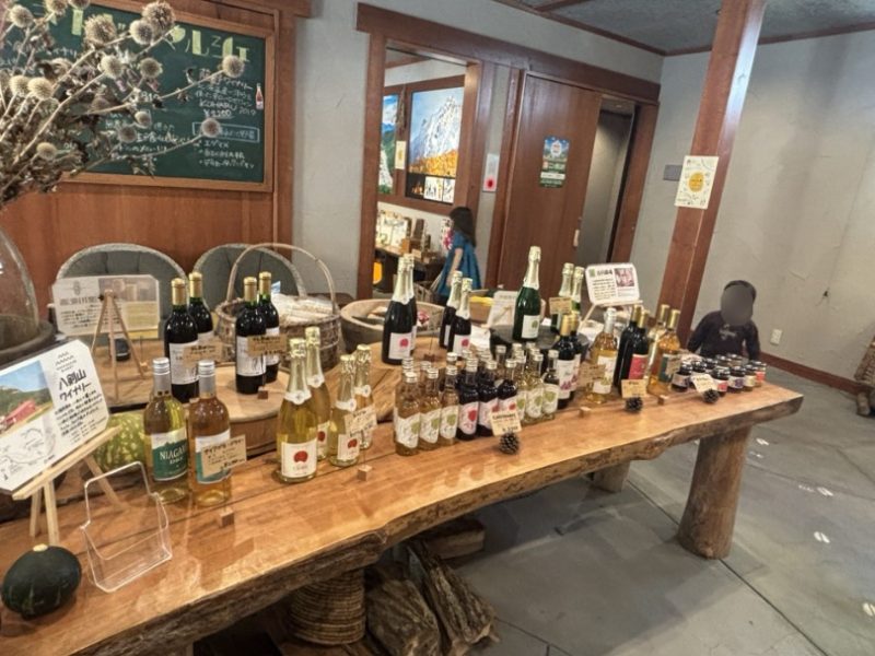 地元のワインやビール、農家さんの野菜やジャムや豚肉などを販売しているよう。