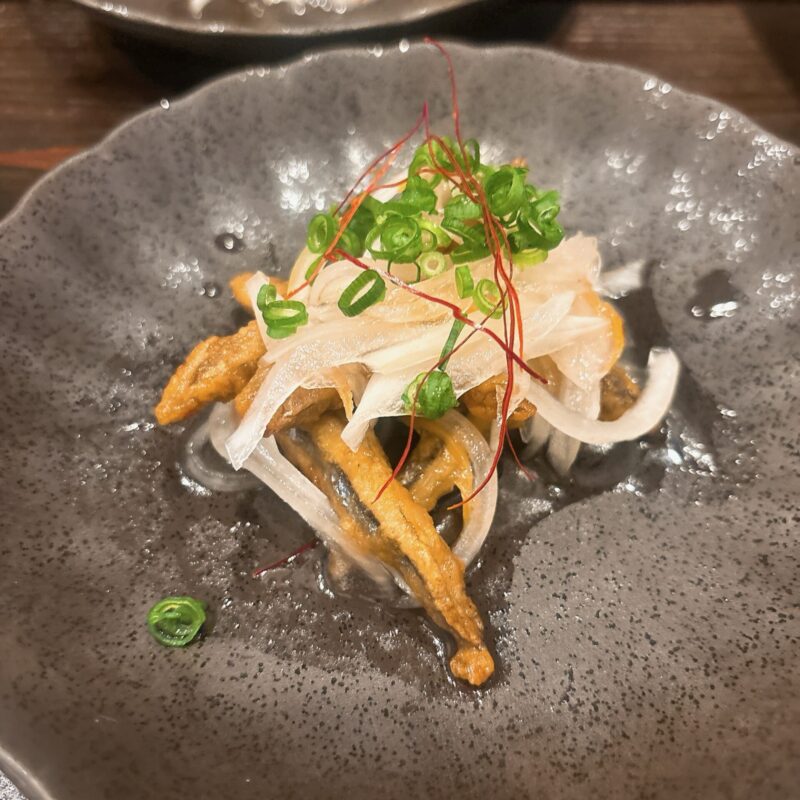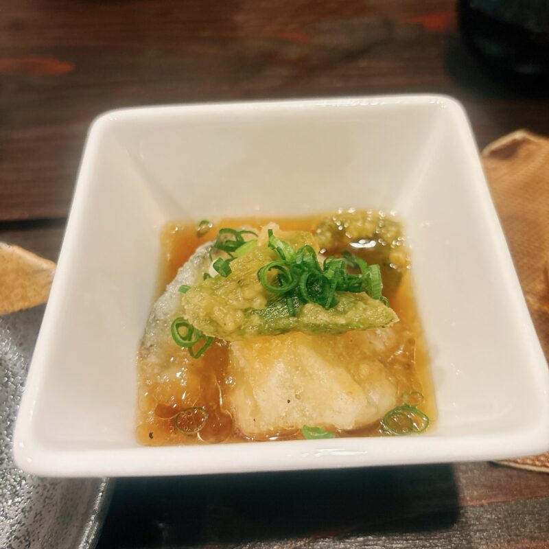 【コース1品目】まずはお通し。揚げ出し豆腐とおさかな(なんの魚だったか忘れちゃいました)