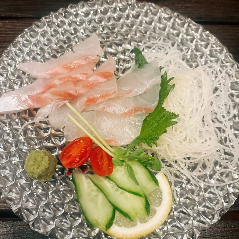 こちらは「鯛のお刺身」これもとっても美味しかった。