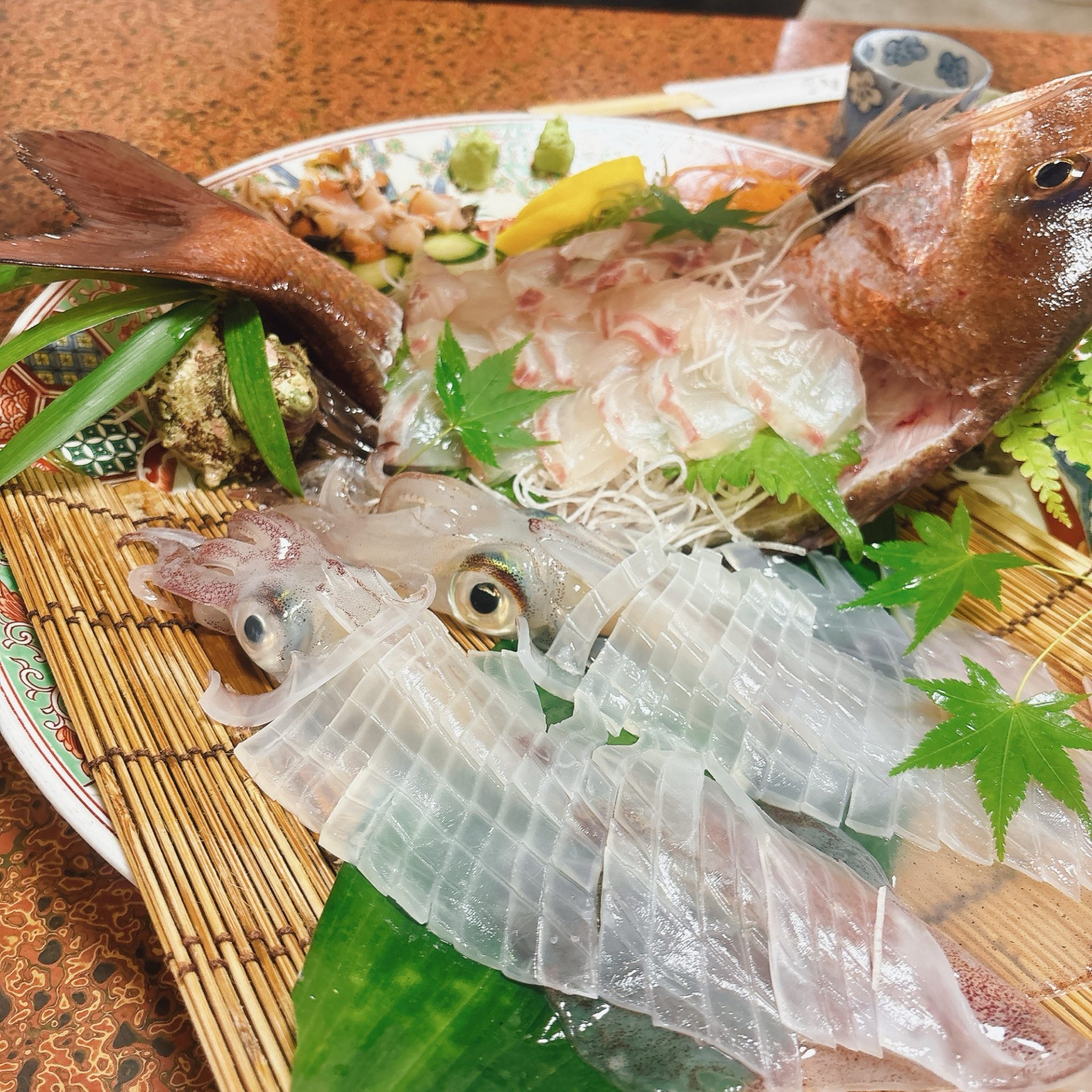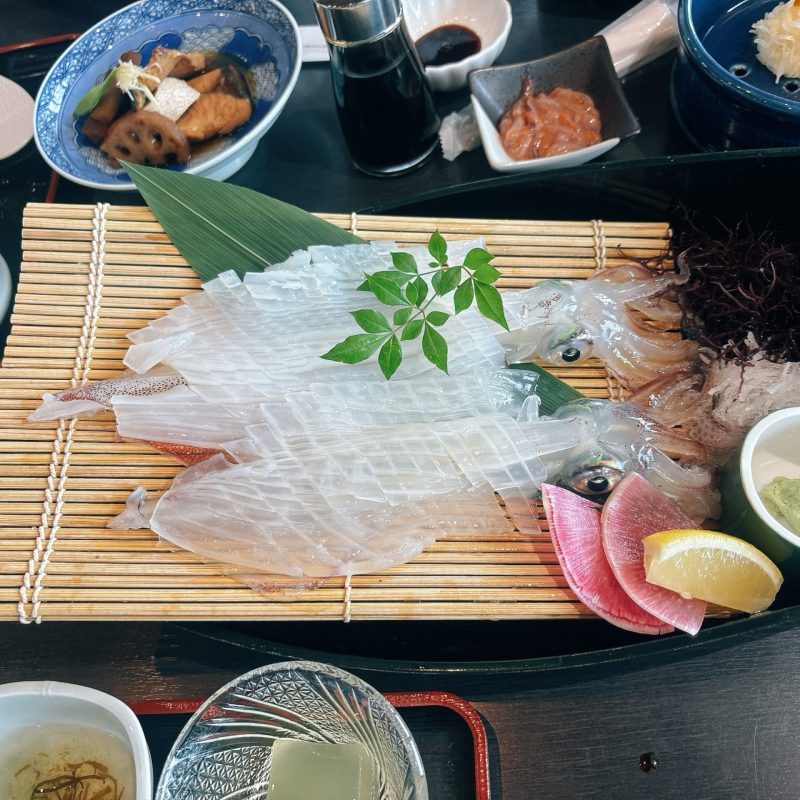 せっかく佐賀まで来たのなら、有名店でも食べてみたいとのことで2日連続イカの活け造りを味わってきました。