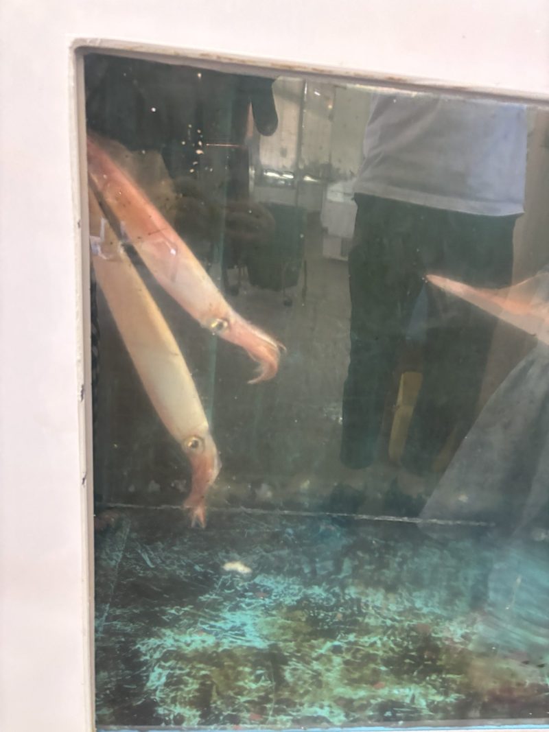 画質悪いですがイカの水槽があり、元気に泳いでいました。