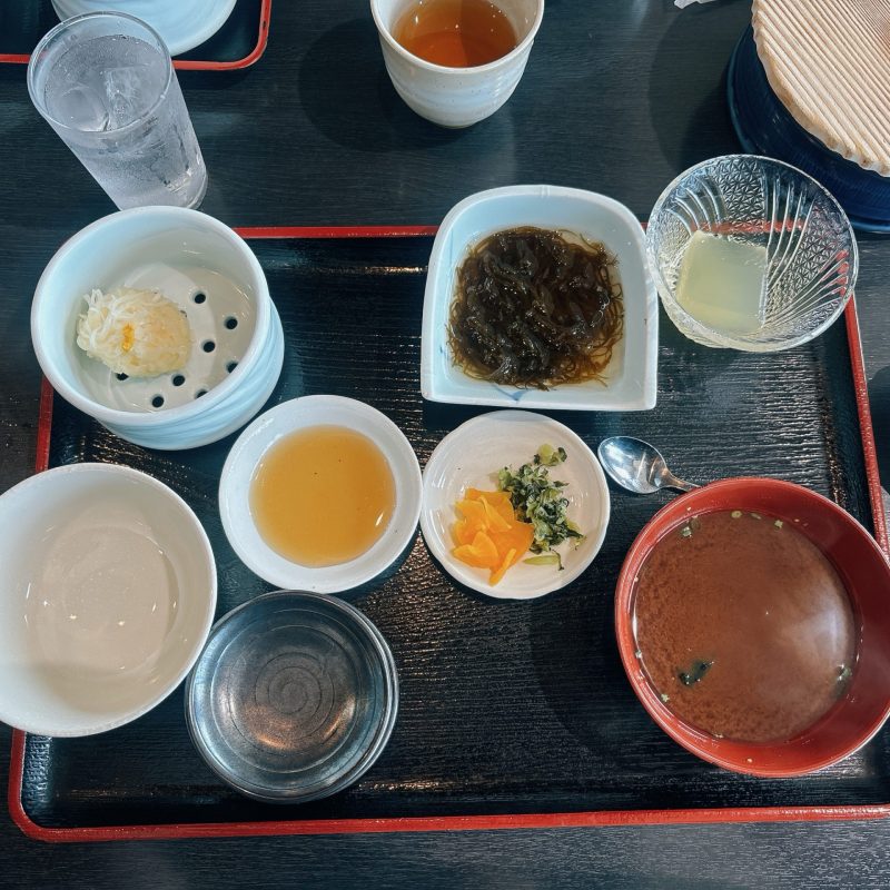 まず最初に先付けのもずくやお味噌汁、いかしゅうまい、ゼリーがきました。