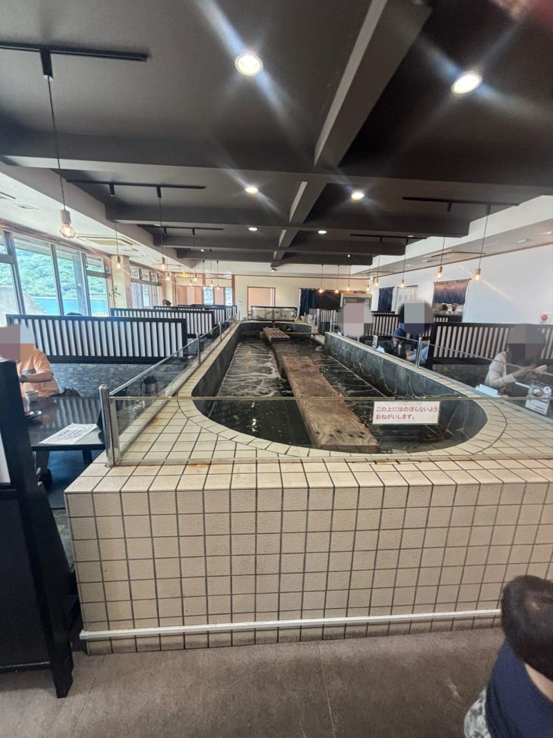 大きな生簀が真ん中にあり、イカが泳いでます。
