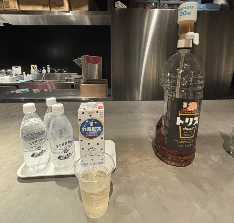 ソフトドリンクマシンが奥にあるので好きなもので割ることができます。