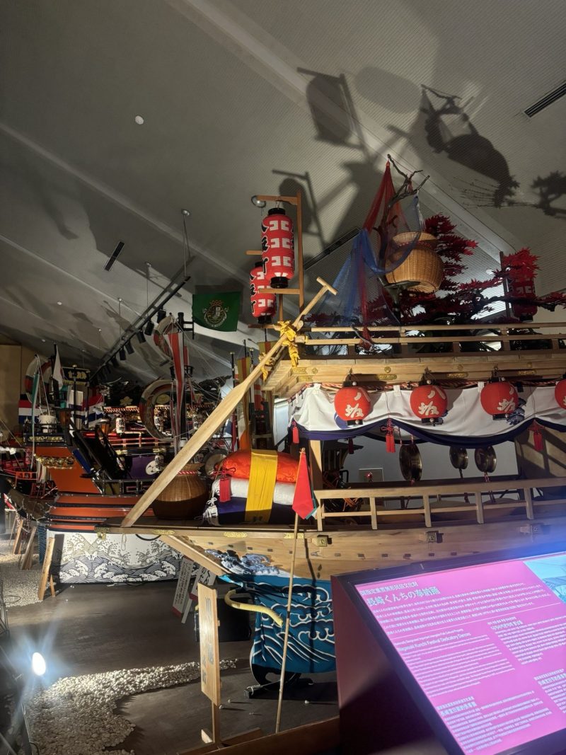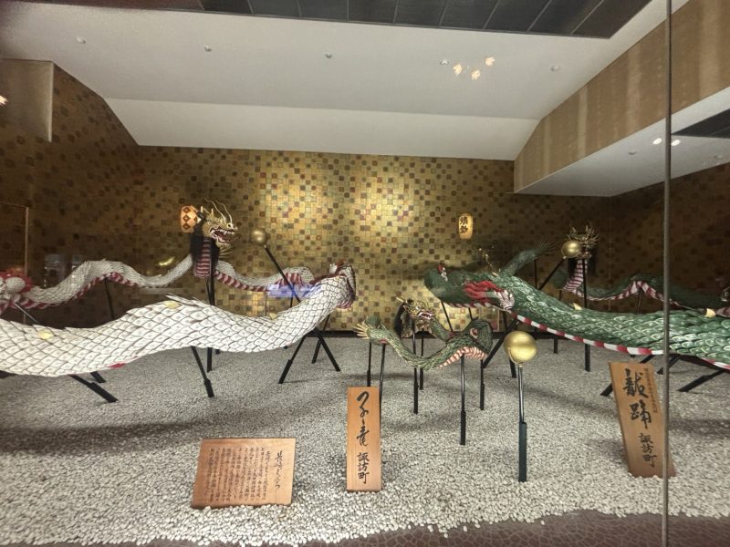 ここには長崎の伝統的なお祭り「長崎くんち」に奉納される曳物、傘鉾、担ぎ物などを展示されていました。