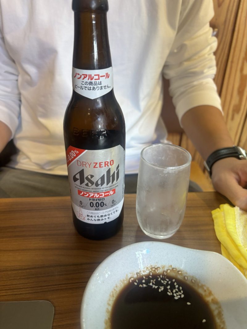 飲み物はノンアルコールビール。