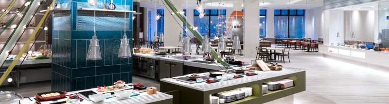 ご飯付きプランだと、朝食、夕食ともにこちらのレストランでビュッフェスタイル。