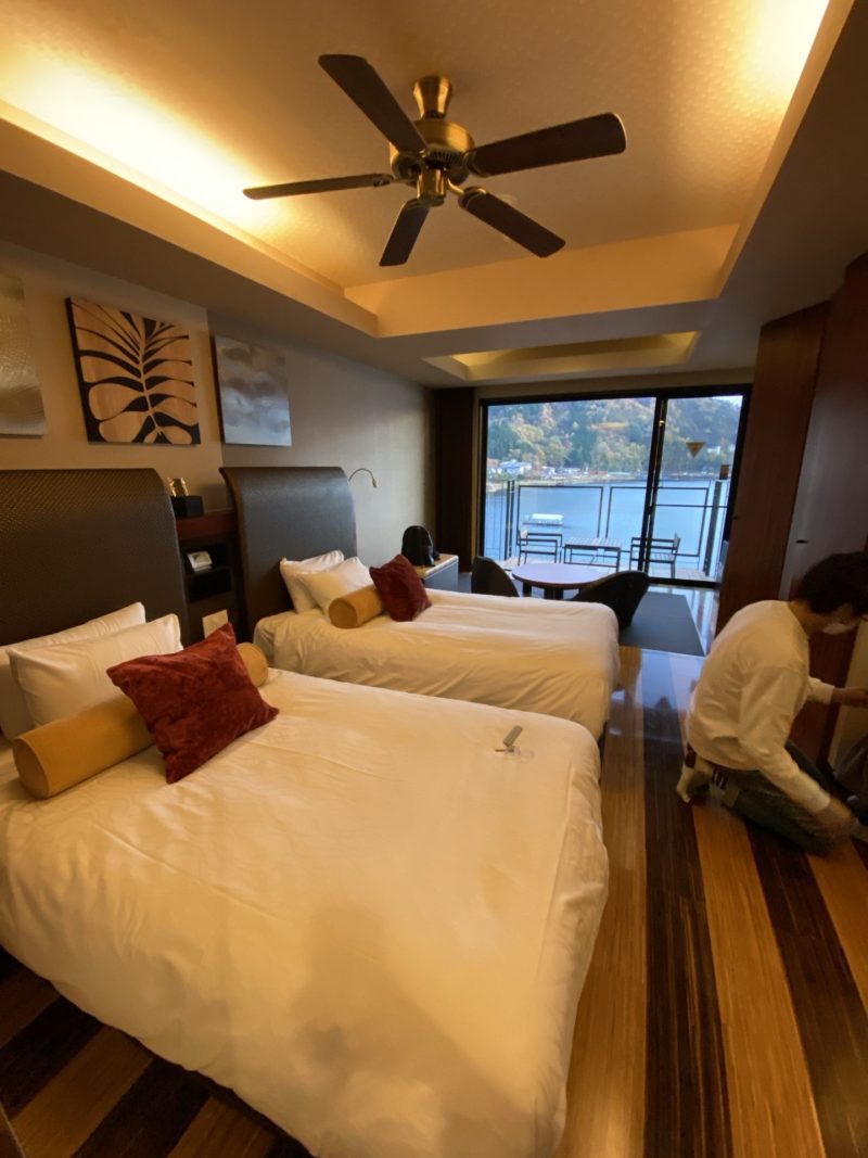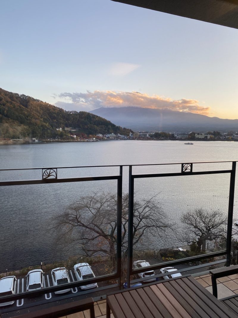 河口湖をぐるっとホテルが建ち並んでいるエリアなので、どこのホテルからも綺麗に富士山が見えるのがこの辺の良いところ◎