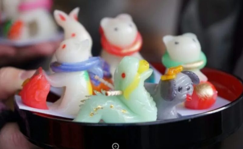 米粉で作られたカラフルな小さなお人形ちんころ。