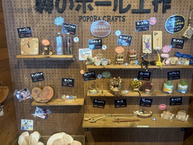 ポポラでは「体験工作」や「木のオモチャがある木育ひろば」「自然体験アクティビティ」が楽しめます。
