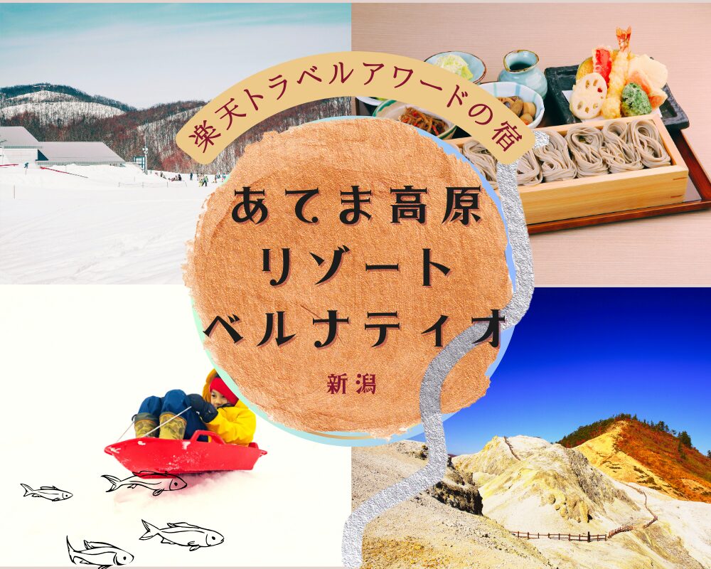 | 施設 | – 温泉(ふるさとの湯/本館、美しの湯/別館、檜の湯/別館・貸切風呂) – サウナ(ドライサウナ) – レストラン(森のシンフォニックダイニング コスモス、日本料理ぶな、新潟テロワール アイリスなど) – ゴルフ場 – ペットと泊まれるコテージ – 自然体験施設 – 季節限定BBQ有料ガーデン – ロビーラウンジ パエーゼ – スリークオーレ – そば処あてま – ショップベルナティオ |