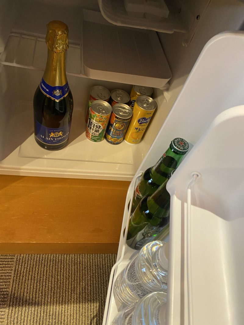 スパークリングワイン、野菜ジュース、コーヒー、オレンジジュース、お水、ビールが入れてありました◎