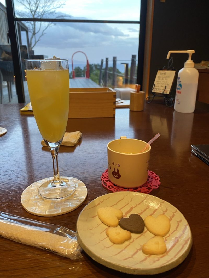 チェックインはお部屋にて。ウエルカムドリンク(アルコールもOK)と子供ジュースとクッキーをいただきながら。
