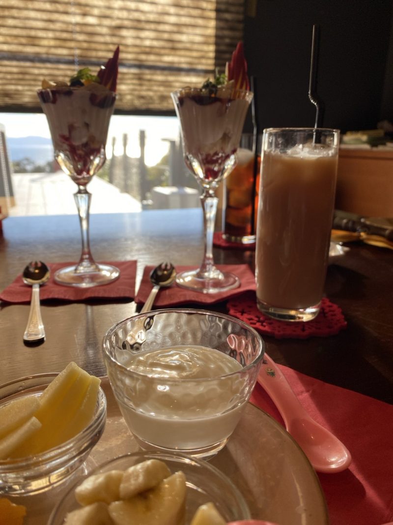 大人はパフェ、子供はフルーツとヨーグルト。