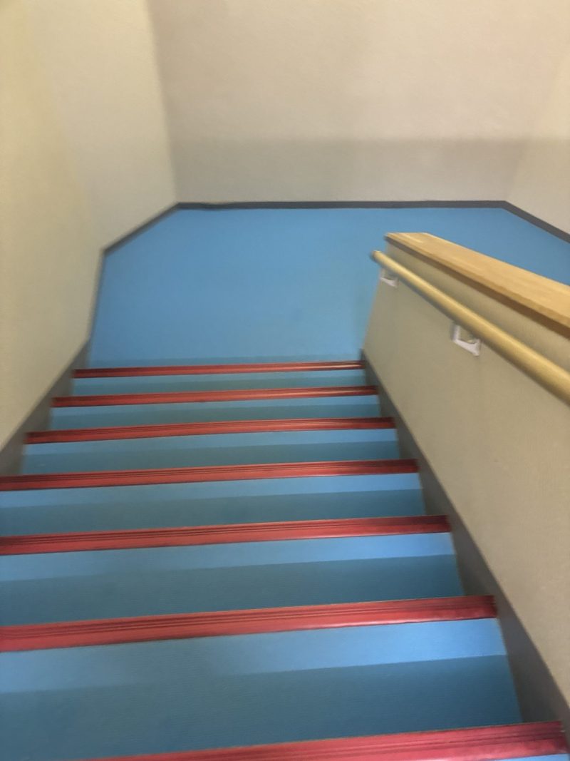 このとき秋でしたが、階段は寒くタオルを巻いていきました。