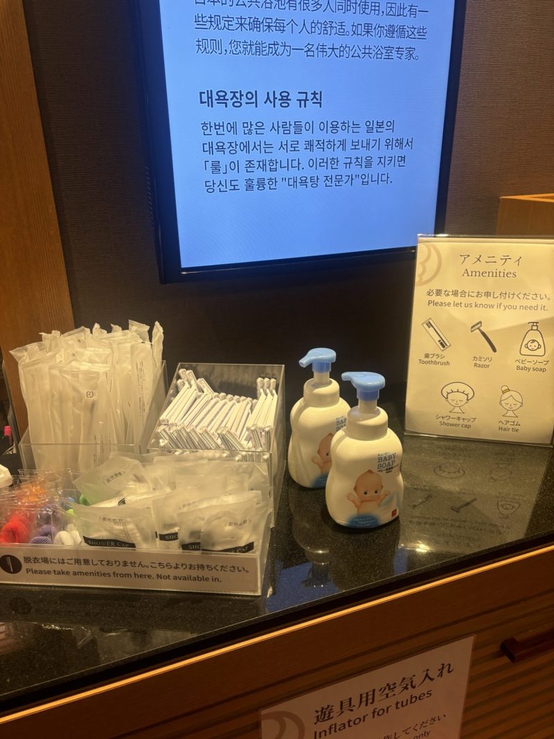 アメニティは大浴場のロッカーに入る前の一角に置いてありました。