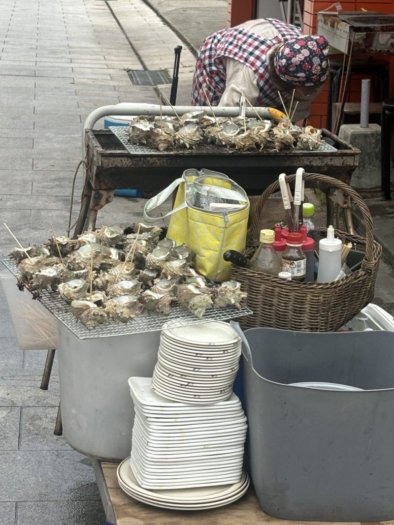 開催時間は7:30〜12:00までで、その日の佐賀の海でとれた新鮮な海鮮や加工した海産物を中心に路上販売している市場です。