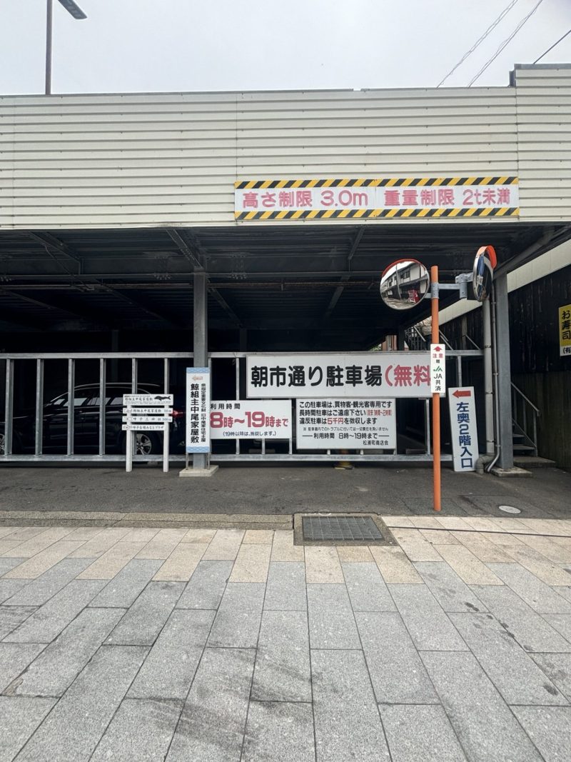 今回は有料の駐車場に停めたのですが、朝市通りに無料の駐車場もありました◎