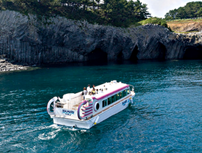 今回私たちが乗ったのは「七ツ釜遊覧船イカ丸」ですが、他にも「海中展望船ジーラ」もあります。
