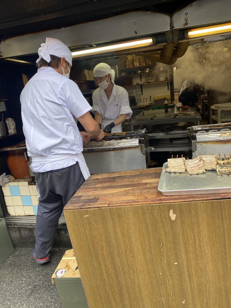 どのうなぎ屋さんも目の前で調理している姿が見られます。