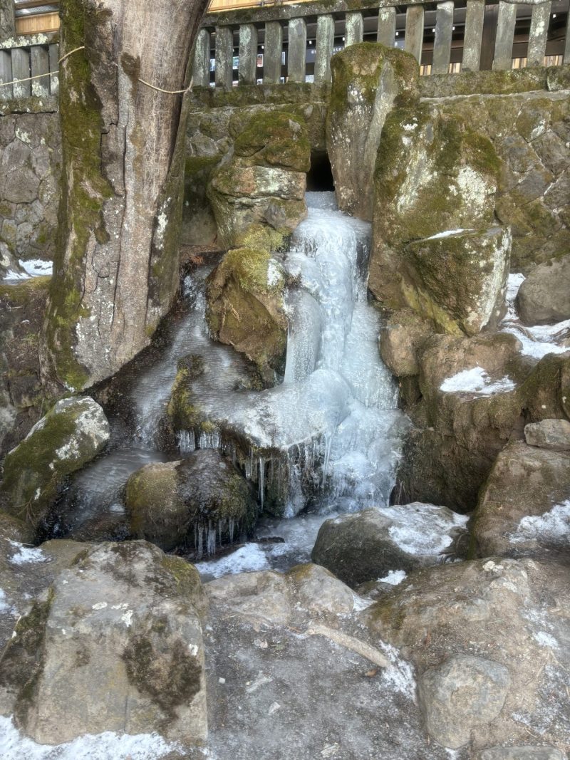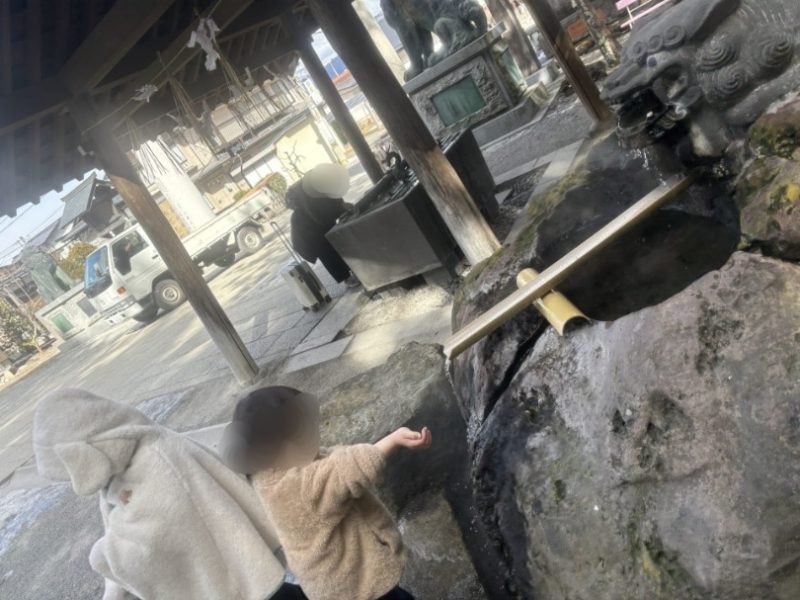 冷たいのが苦手でこちらでは手水をせずに、温泉が出てる温かいお湯の手水舎を使用しました。