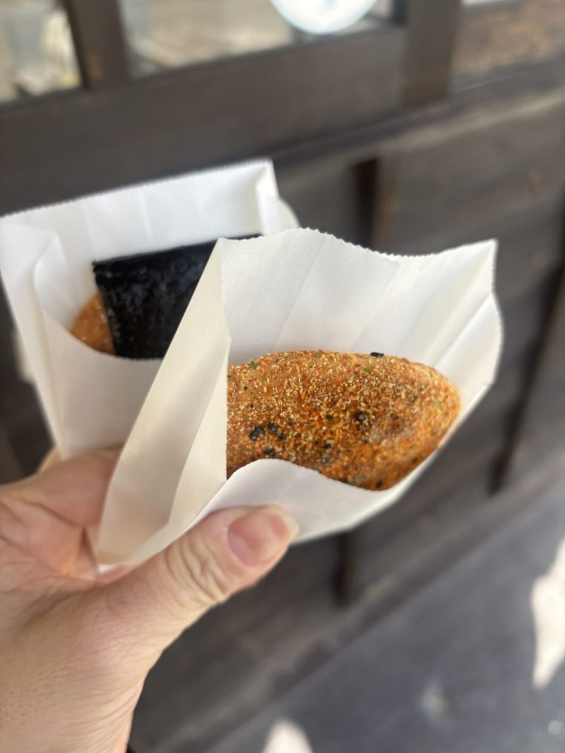 お店の前にベンチがあるので、ちょっと一休憩を入れつつお煎餅を食べました。
