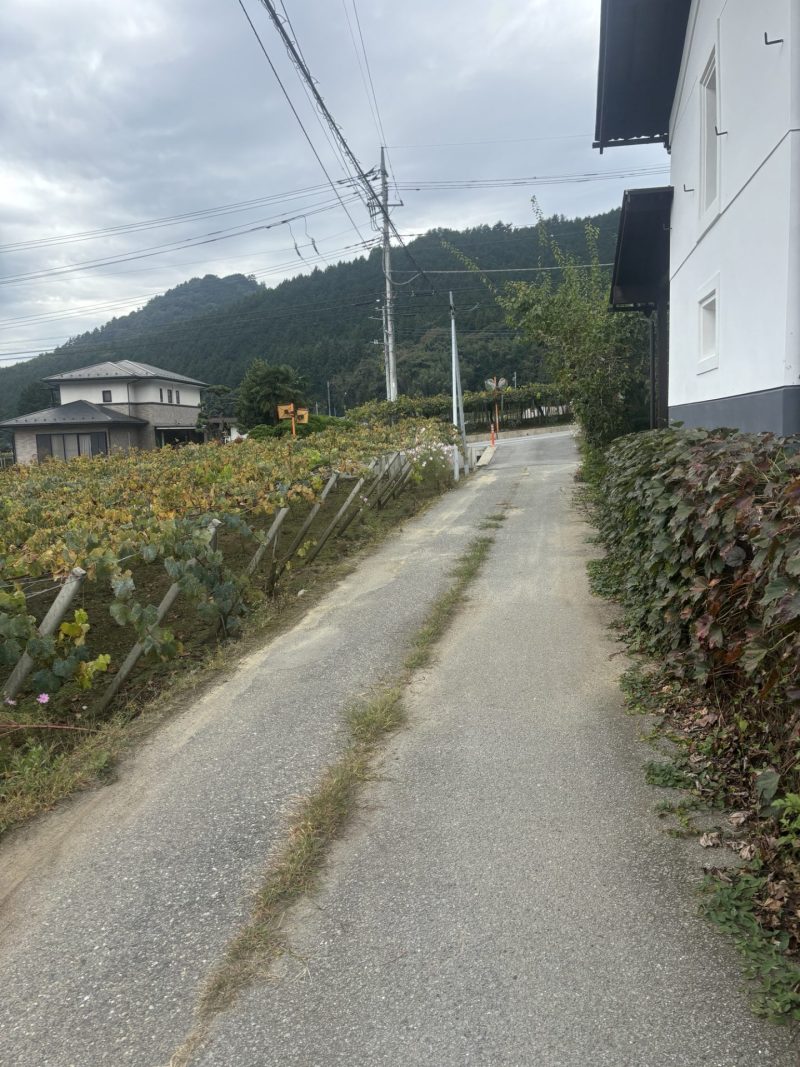 ちなみに畑脇の道は、近所の人が通る道なので脇道に停めるとだいぶ迷惑(車がすれ違えない)がかかるので、必ず敷地内に駐車させてもらいましょう。