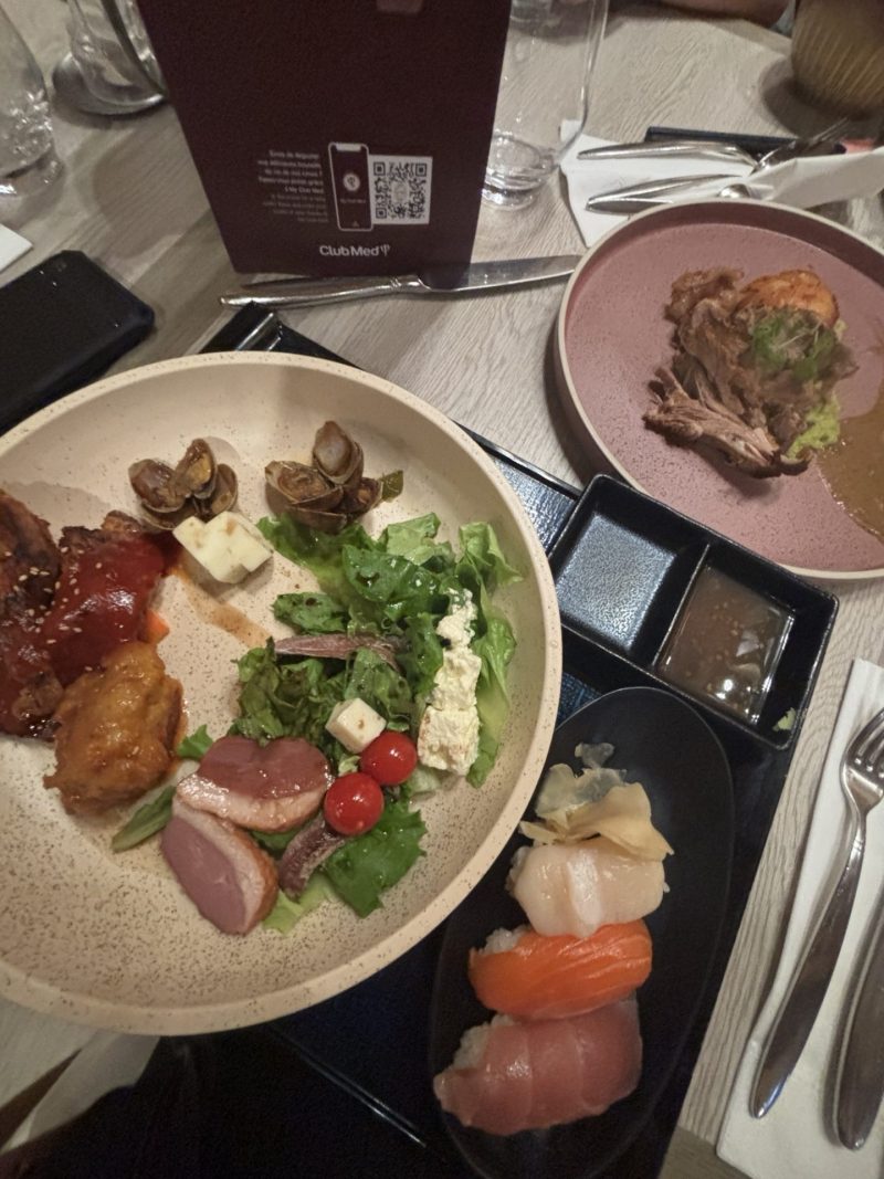 美味しいのですが、毎日クラブメッドにいるとだんだん大味なのに飽きてきて3日目からは毎日サラダ×サーモン、玄米パンのメニューを食べてます。