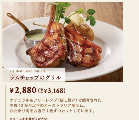いつも頼むのがこれ。ラムチョップのグリル。臭みもなく美味しい♡これにサラダバー追加して4700円ぐらい。ファミレスにしては結構高め。