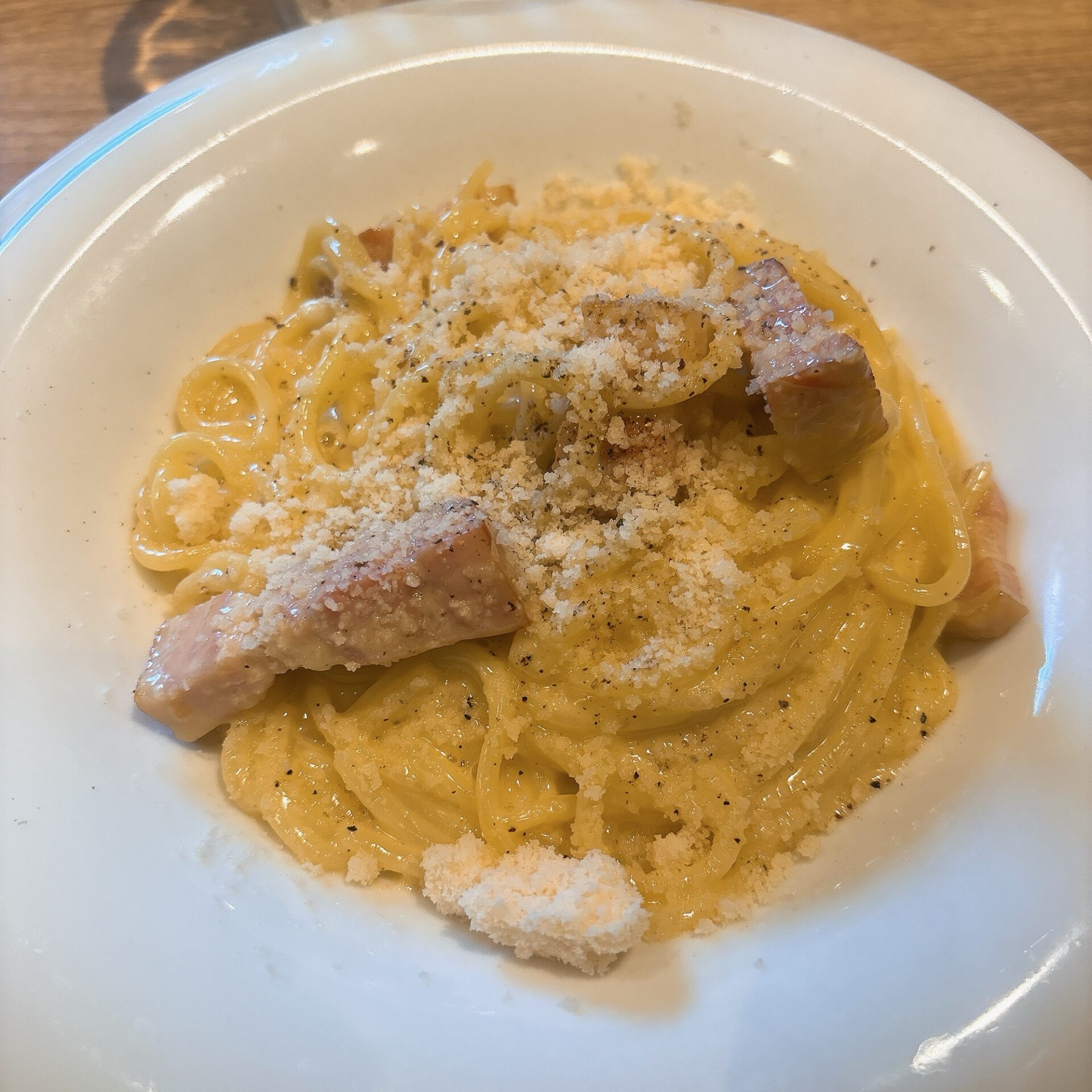 カルボナーラは胡椒抜きかどうか聞いてくれました。