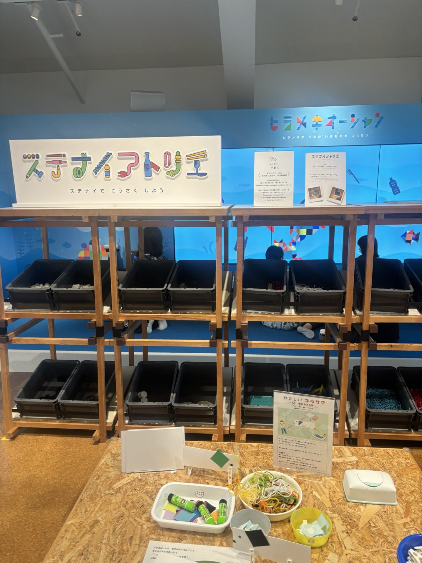 SDGsっぽいコーナー!てっきり廃材を使って工作をして持って帰れると思ったのですが、そうじゃなく組み立てるだけみたいです。
