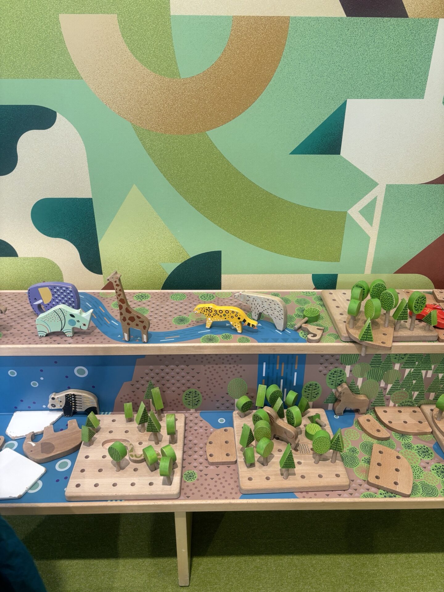 動物のパズルと声が聞こえるエリア(説明下手)海外っぽいおしゃれさがあります。ひたすらパンダ役をやらせていただき、退散。